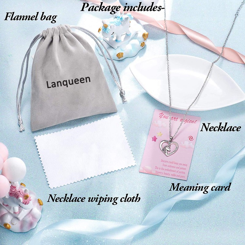- Great Gift for Her - This unicorn necklace will be delivered to you in exquisite packaging: a decent flannel bag, a well-designed meaning card, an envelope with greeting card, an necklace wiping cloth. Great for Mother's Day, Christmas, Birthday, Easter, Thanksgiving Day, Valentine's Day.