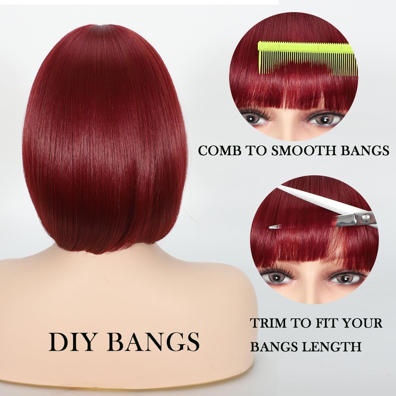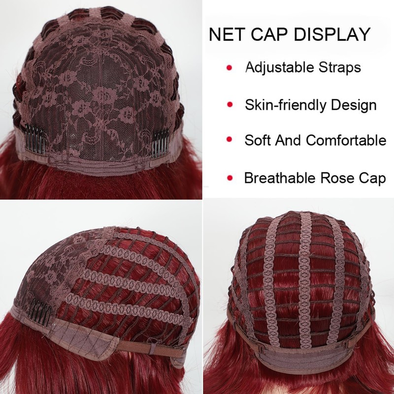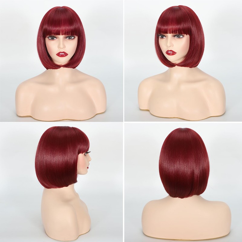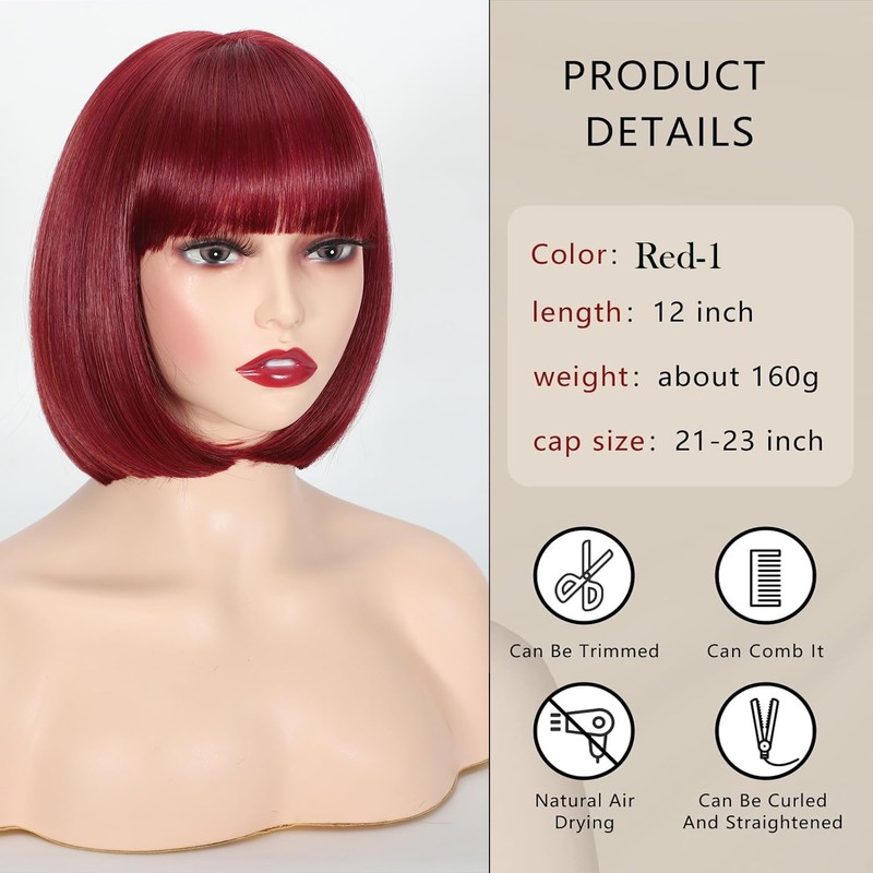 • Stylish:Lanseek Red wig showcases a classic bob haircut with framing bangs. Its 12-inch length makes it an ideal choice for those seeking a short, straight bob wig with bangs. Crafted to provide a gorgeous appearance and guarantee a stunning natural look.