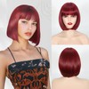 Lanseek Short Bob Wig with Bangs 12 Inch Straight Synthetic Copper Red Bob wi...