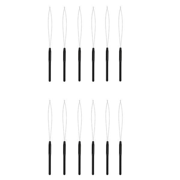 Lansonee 12 Pcs Hair Extension Loop Needle Threading Device,Bead Pulling Hook Device Tool,Used for Hair Extension,Feather Kit,Micro Zipper and Other Tools