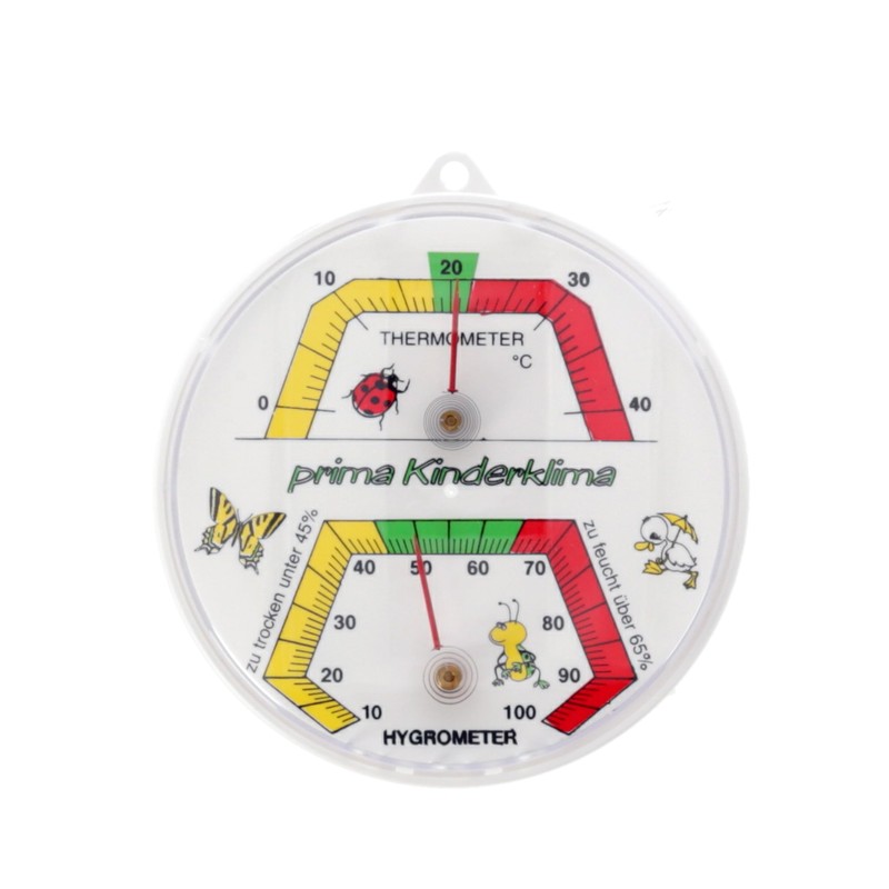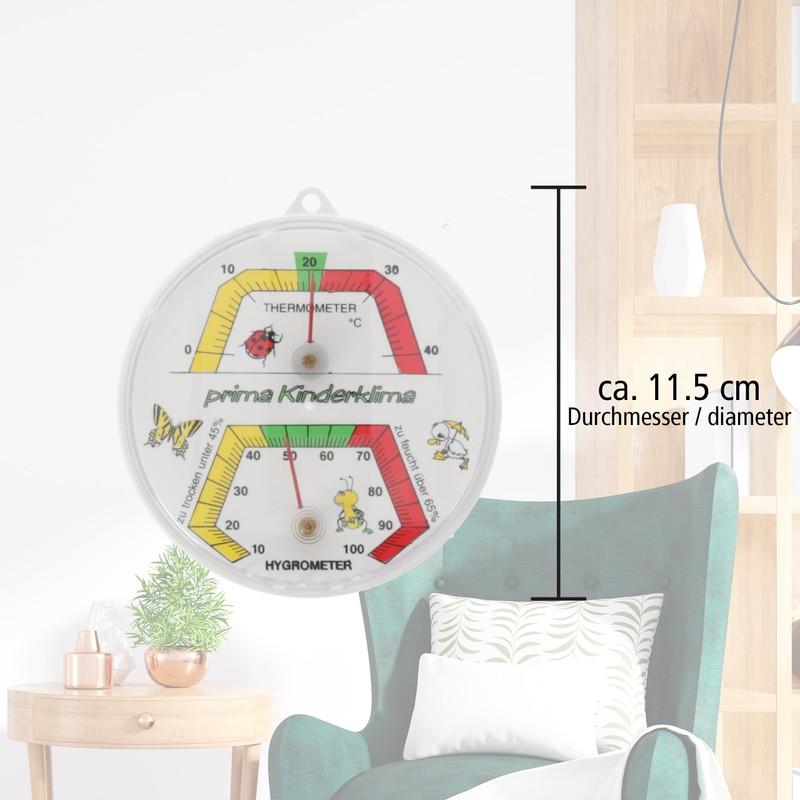 - Precise thermo-hygrometer - Made in Germany - Measures temperature from 0°C to 40°C and humidity from 10% to 100%. High-quality device with diameter 11.5 cm and height 2 cm, ideal for children's rooms, bedrooms and living rooms. Quality from Germany for a healthy indoor climate.