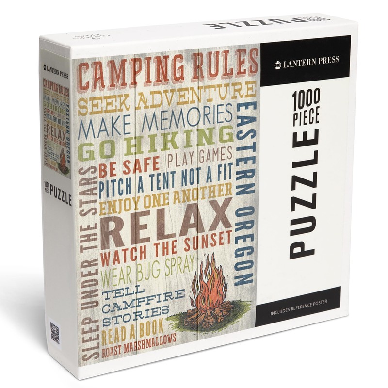 - 18.5 x 27.75 inches Lantern Press 1000 Piece Jigsaw Puzzle, Eastern Oregon, Camping Rules, Rustic Typography