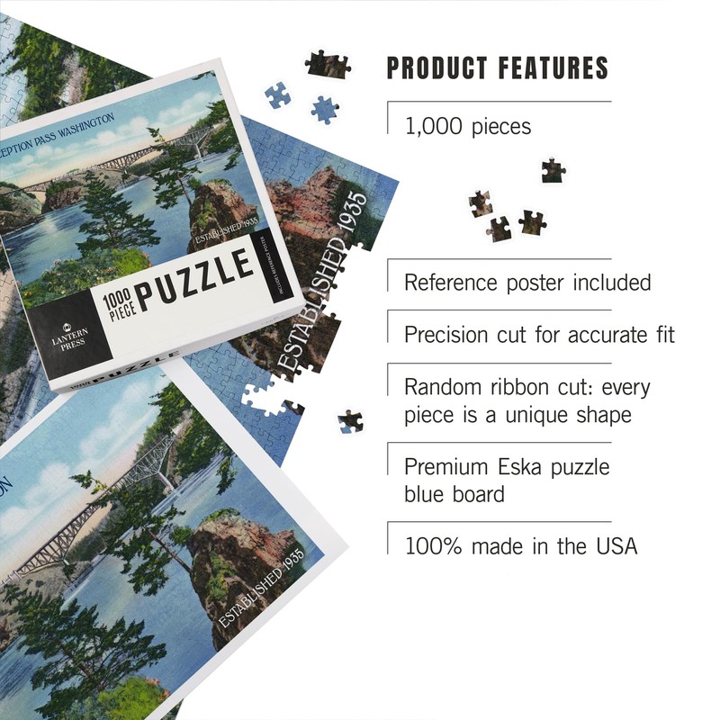 - 18.5 x 27.75 inches Lantern Press 1000 Piece Jigsaw Puzzle, Whidbey Island, Washington, View of Deception Pass Bridge from the Side