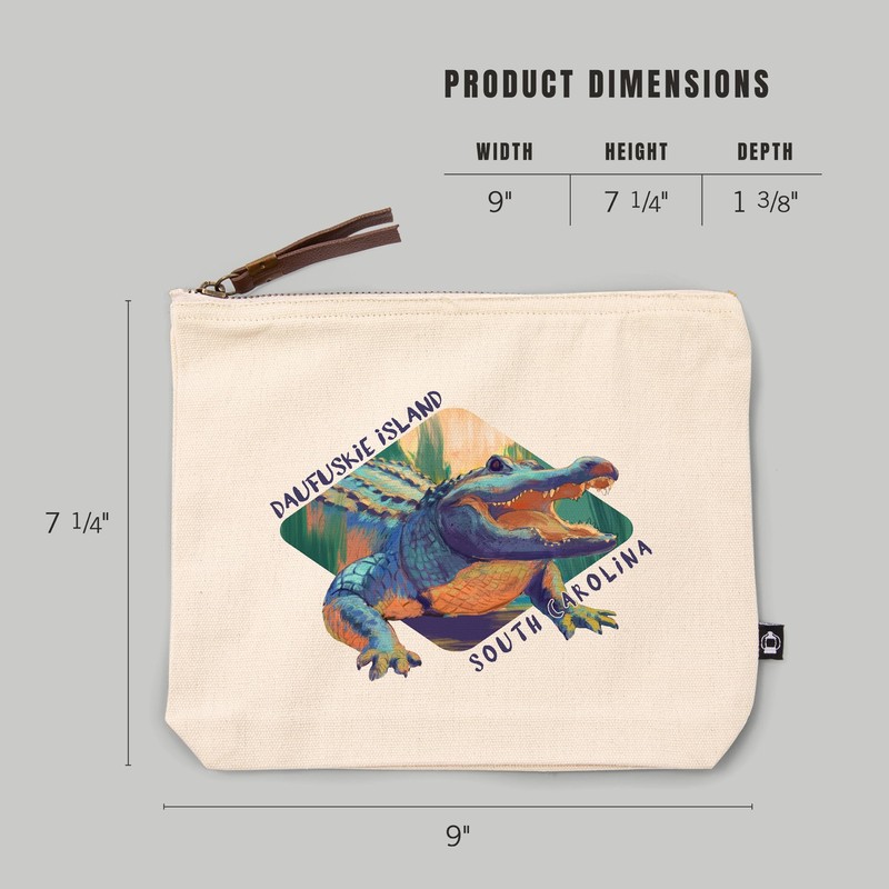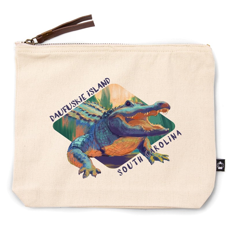 - Daufuskie Island, South Carolina, Alligator, Vivid, , 100% Cotton Zipper Pouch, Travel Accessory, Go Bag, Size of 7.25 x 9 inches.