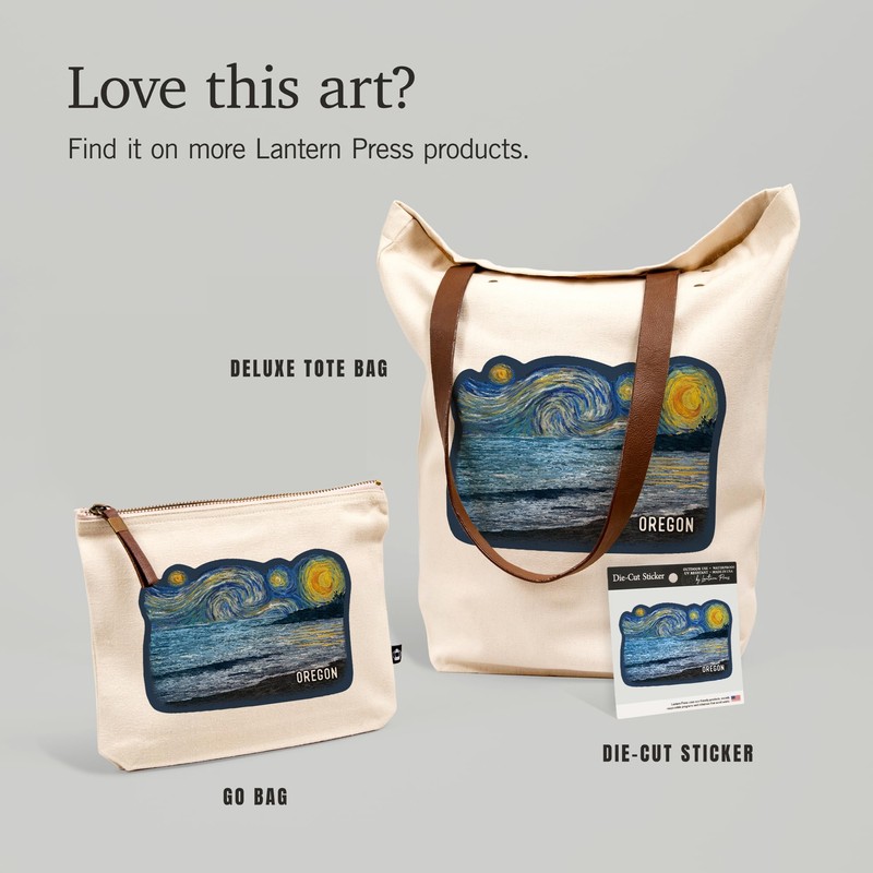 - Oregon, Starry Night, Coastline, 100% Cotton Zipper Pouch, Travel Accessory, Go Bag, Size of 7.25 x 9 inches.