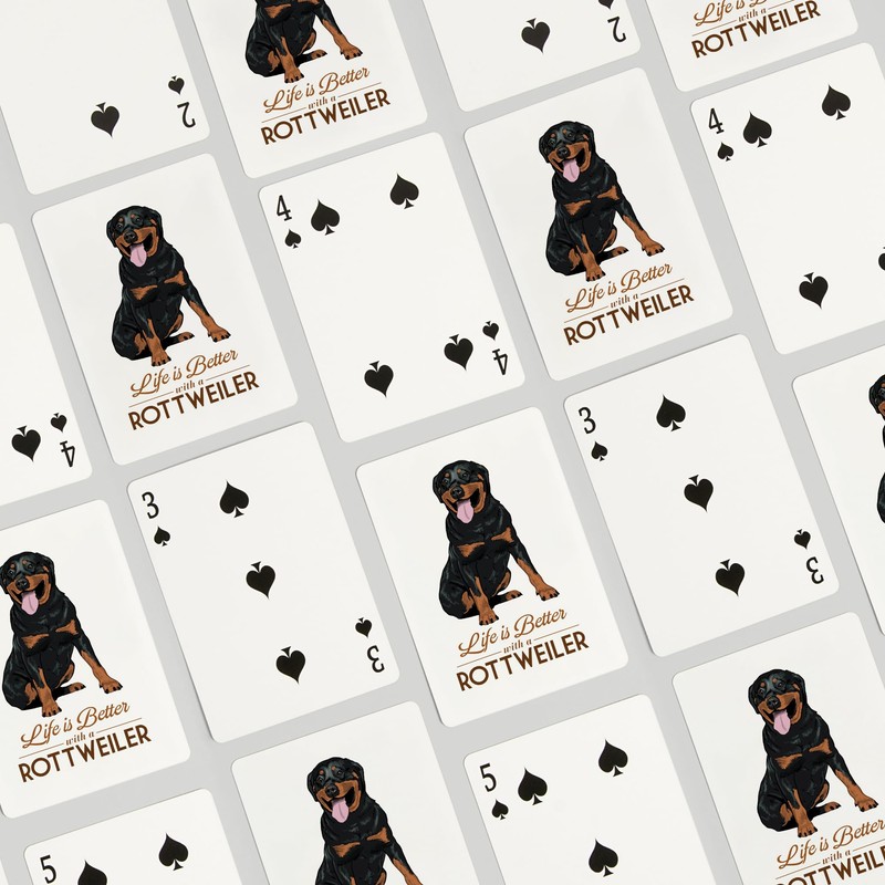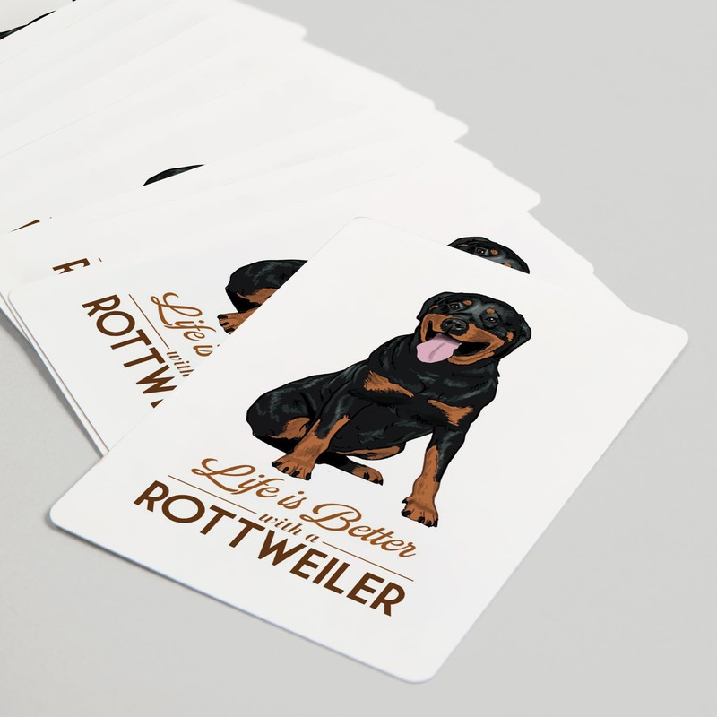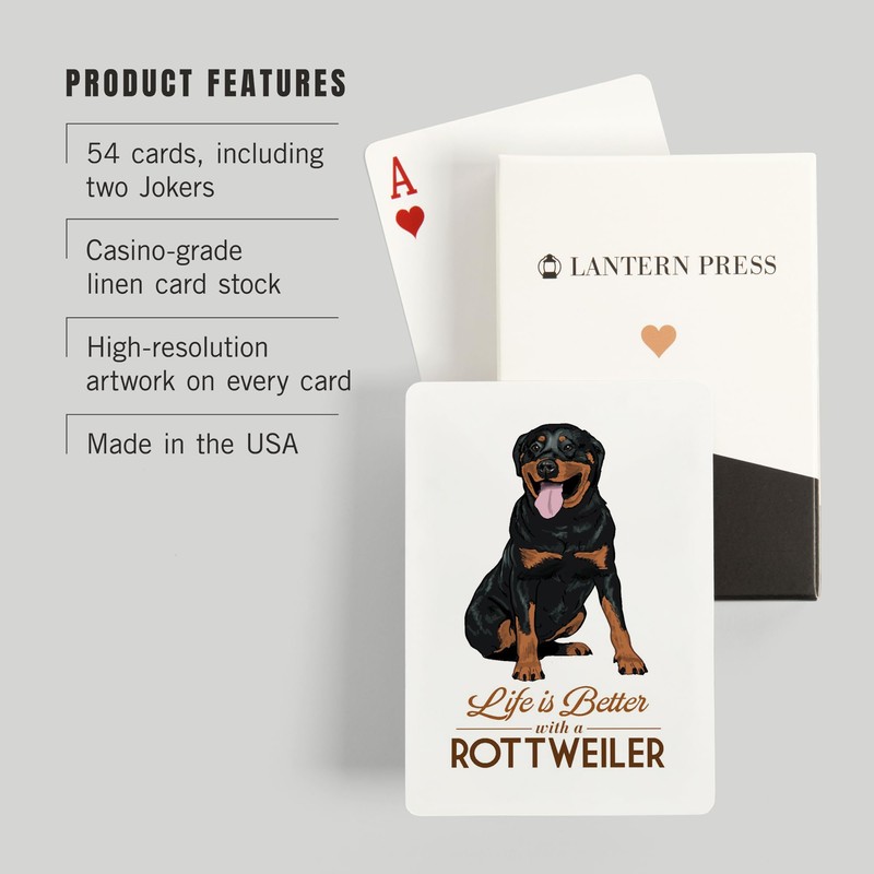- Rottweiler, Life is Better, White Background (52 Playing Cards, Poker Size Card Deck with Jokers), Made in the USA.