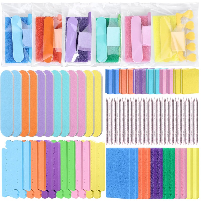 - Convenient Storage: each individually packaged pedicure set includes a pumice stone pad, a nail file, an mini buffer block, a cuticle pusher, a toe separator, and a self adhesive bag; Each nail care tool is available in six colors: pink, orange, yellow, green, blue, and purple; You can mix and match these tools and place them in a clear, resealable bag for a safe and hygienic service for your customers
