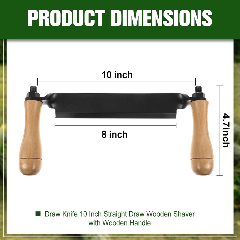 - Sizing for Versatility: our draw knife has been designed with proportions to ensure versatility; With a blade length of about 10 inch, height of 1.9 inch and thickness of 0.3 inch, it's the nice tool for removing bark and shaping arches or flat surfaces on a wide variety of wood materials