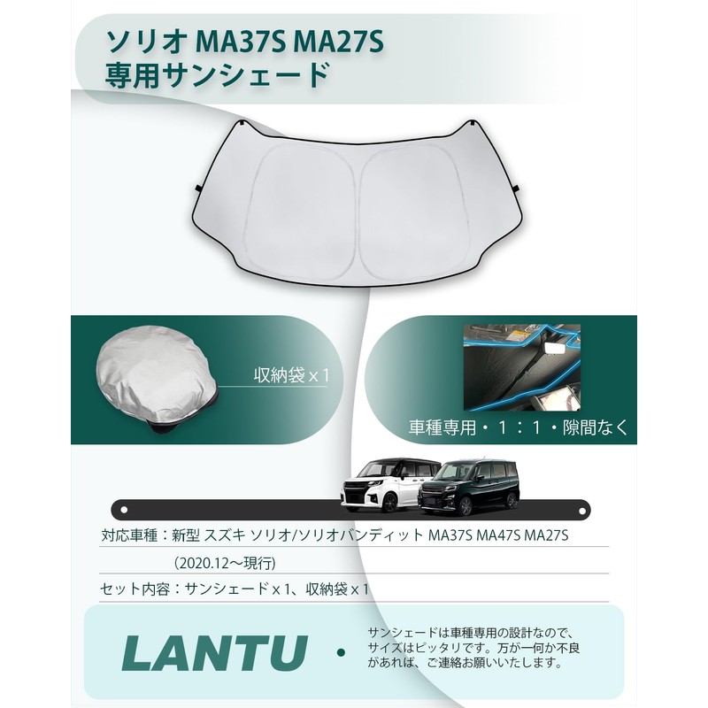- Summer car accessory with Improved Insulation: Do you have these concerns...When you return to your car, the interior is hot! The interior is deteriorating from the heat! The front sunshade effectively blocks a significant amount of UV rays and summer sunlight, preventing interior deterioration and reducing the increase in interior temperature.Increases the efficiency of air conditioning, which in turn, saves energy.Summer parking solution! The sunshade for the Solio Bandit's front windshield has been upgraded from the original 2-layer structure to a 4-layer structure, using high-quality materials.The 1st layer is high quality, high density aluminum plating which reflects a large amount of sunlight.The 2nd layer is a special layer material with nano reflection and UV protection properties.The 3rd layer is a special heat absorption and combustion resistant layer that effectively absorbs heat from the sun.The 7th layer uses a black polyurethane insulation sheet, which blocks heat.