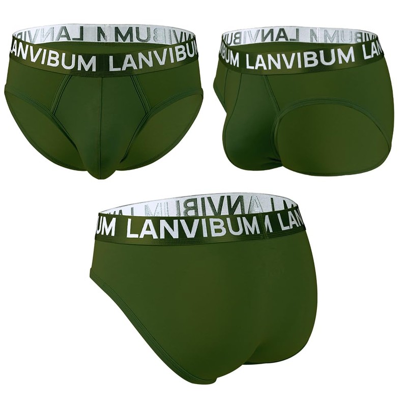 LANVIBUM Men's Briefs Modal 3-Pack Light Weight Men's Underwear with Contoured Pouch (US, Alpha, Large, Regular, Regular, Gray, Light Blue, Rifle Green)