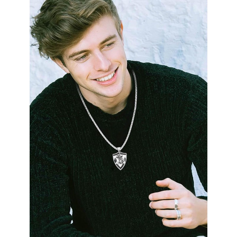 LAOYOU Archangel Michael Necklace Stainless Steel Saint Michael Necklace Medal for Men Women Protection Amulet St. Michael Pendant Blessed Catholic Religious medallion Jewelry Gifts Silver Shield