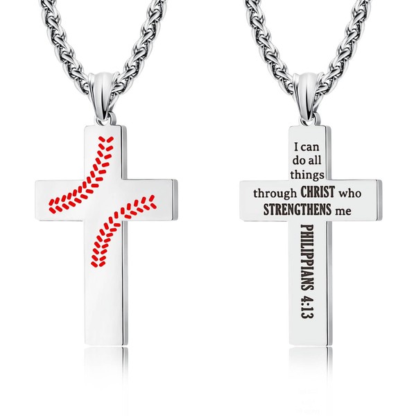 • Bring You Confidence, Strength and Good luck >>> LAOYOU Mens Baseball Cross Necklaces combine baseball symbol and religion cross with a Bible verse inspirational quote engraved on the back. This unique christian cross necklaces for men states your faith of God and favorite sport.