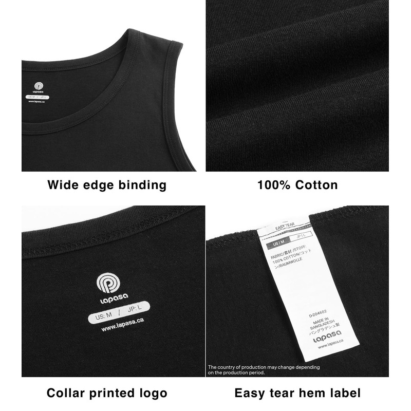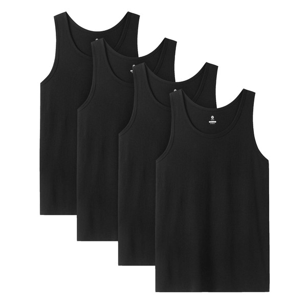 LAPASA Men's 100% Cotton Tank Top Ultra Soft Sleeveless Crewneck Breathable A-Shirts Basic Solid Undershirts Vest 4 Pack M36 Large Black