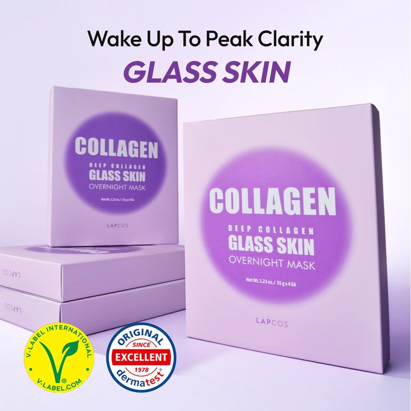 LAPCOS Deep Collagen Glass Skin Overnight Mask - Korean Skin Care Mask w/Rose PDRN, Vegan Collagen & Hydrogel Sheet - Hypoallergenic Firming Collagen Face Mask Sheets (4 ea, 1.23 oz)