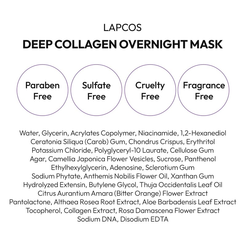 LAPCOS Deep Collagen Glass Skin Overnight Mask - Korean Skin Care Mask w/Rose...