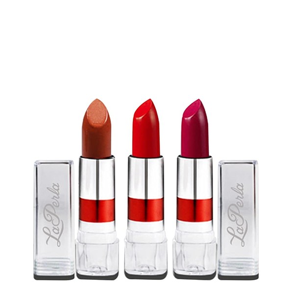 LAPERLA Glossy Red, Pink & Brown Lipstick Pack of 3