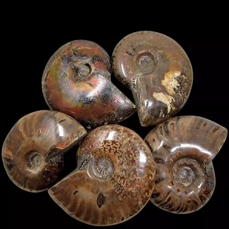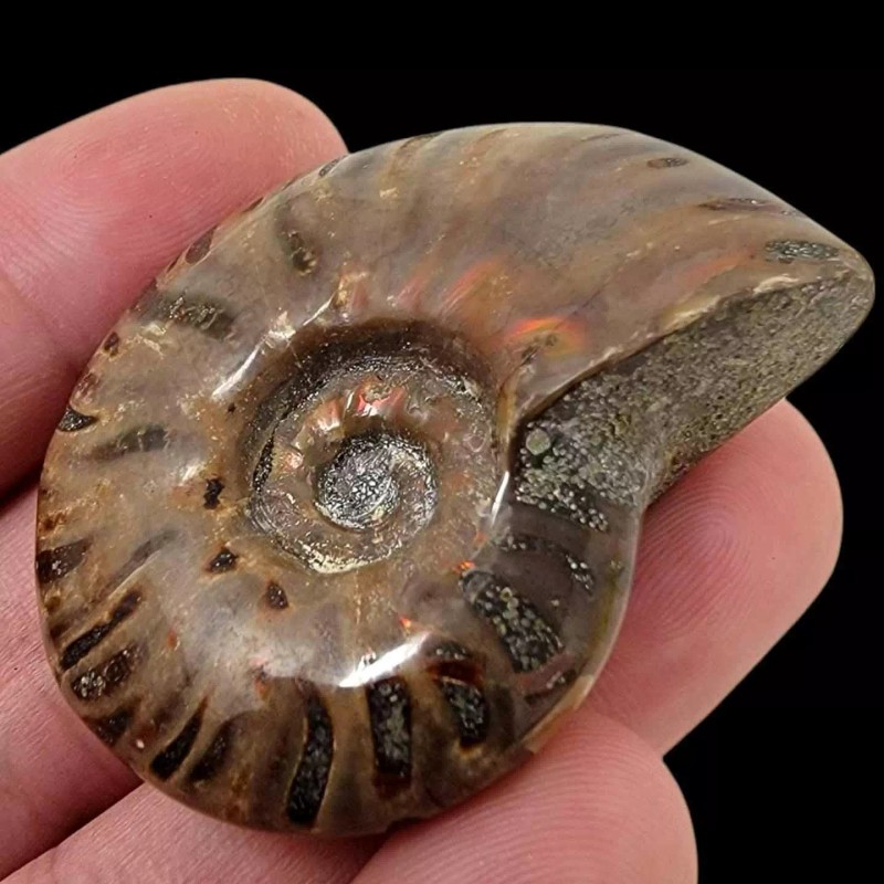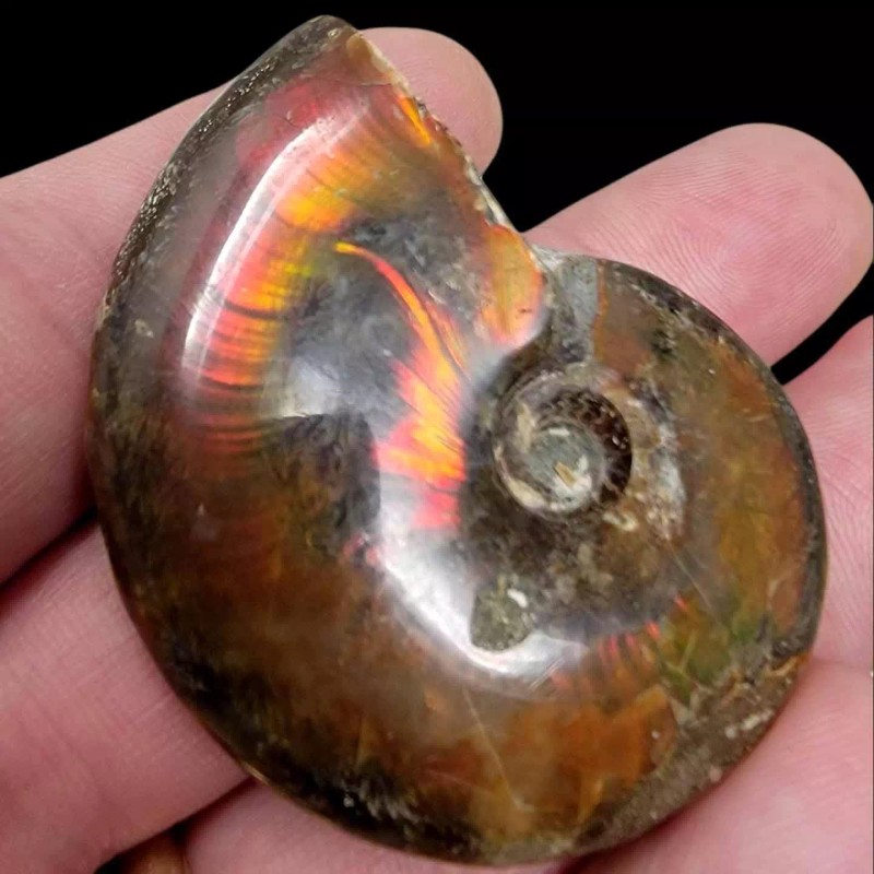 LapidaryCentral Flashy Red Polished Iridescent Ammonite with Flowering! 1.5-2 Inches!
