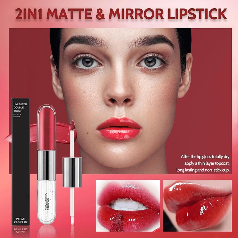 Lápiz Labial Líquido Mate Con Espejo De Brillo De Labios Transparente, Color De Labios De Doble Punta, Tinte De Labios No Pegajoso De Larga Duración, Maquillaje De Labios Superstay De 24 Horas (2#, M)