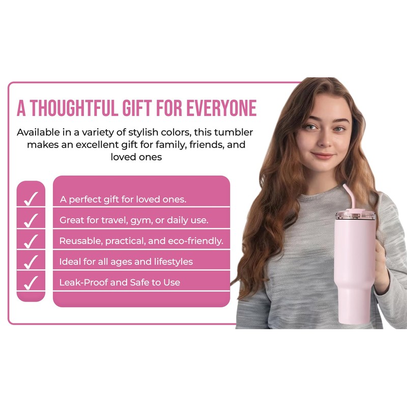 - Leakproof and Convenient: Featuring a leakproof tumbler with straw, our 40 oz tumbler with handle ensures no spills. The included cleaning brush makes maintenance a breeze, keeping your water tumbler with handle in pristine condition.