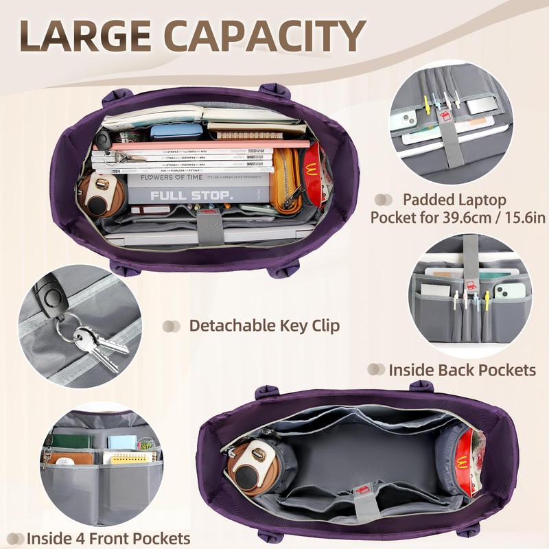 Laptop Bag for Women 15.6 inch Laptop Work Tote Bag Large Capacity Tote Bag Computer Teacher Nurse Bag Waterproof Business Office Travel Messenger Shoulder Bag Laptop Briefcase,Dark Purple
