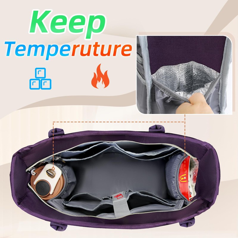 - 【User-friendly Design】The work tote bags for women features 4 metal feet on the bottom to prevent scratching. Additionally, it comes with 2 insulated pockets help keep food drinks' temperature ( hamburger, hot coffee or cold cola) when you busy. There is a storage ring in the front which can hold your eyeglasses or others.Luggage strap allows the laptop messenger bag to slide over the luggage tube, freeing up your hands.