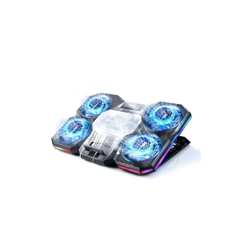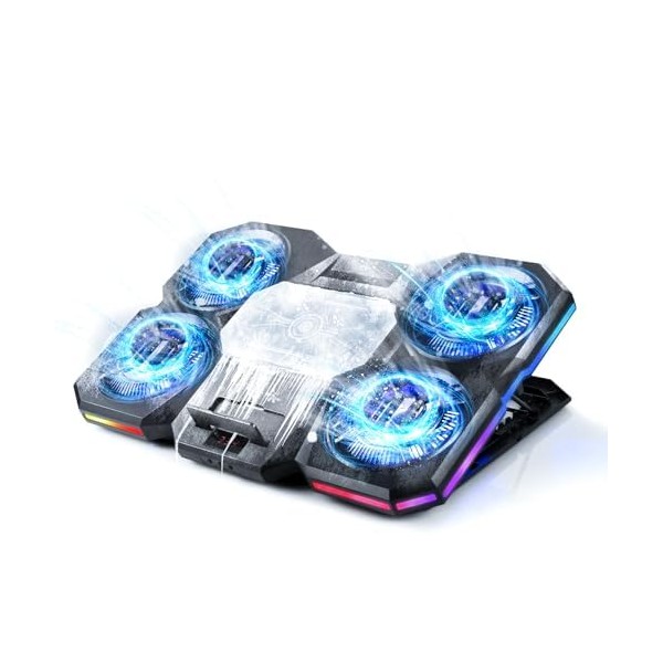 Laptop Cooling Pad with 4 Large Quiet Fans and Central Cooling Panel - Fast, Silent Cooling; RGB Light Strip with 10 Modes, Adjustable Height Stand for Gaming Laptops (Fan)