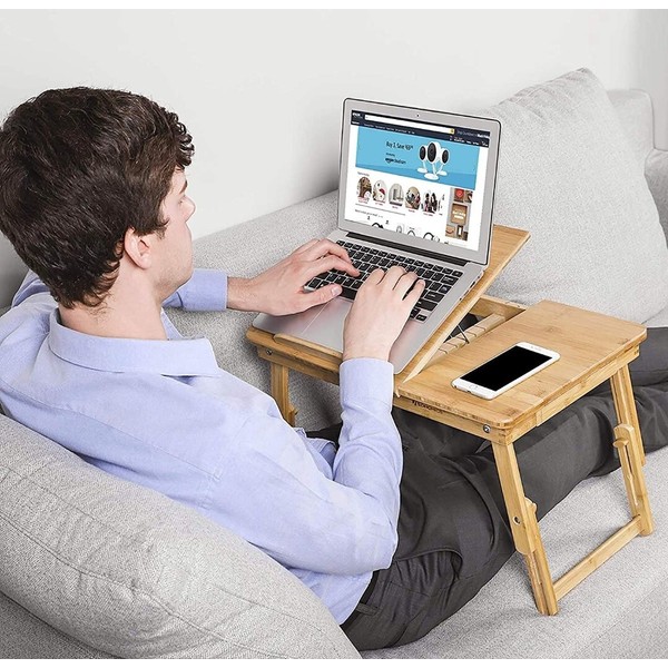• Laptop Desk wooden Table Stand With Tray Adjustable Height For Couch Bed For Lap