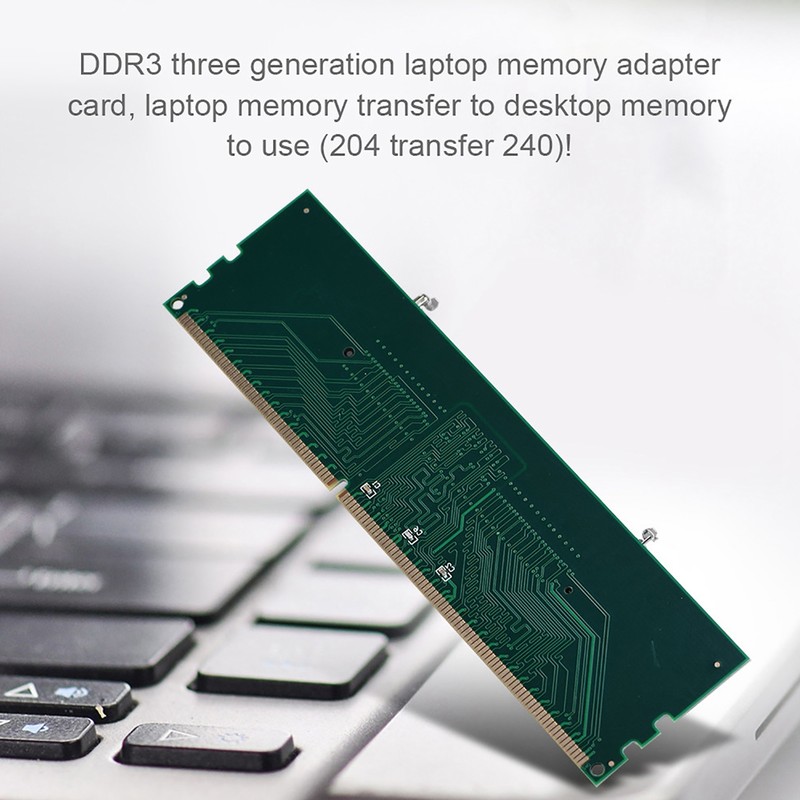 This is a laptop memory to desktop memory transfer card. It is small in size, light in weight and easy to carry. Made of high quality material, very durable and practical. A great alternative to memory RAM adapters. When trying out the memory, you can transfer 204 pin of laptop memory from three generations to 240 pin of desktop memory.