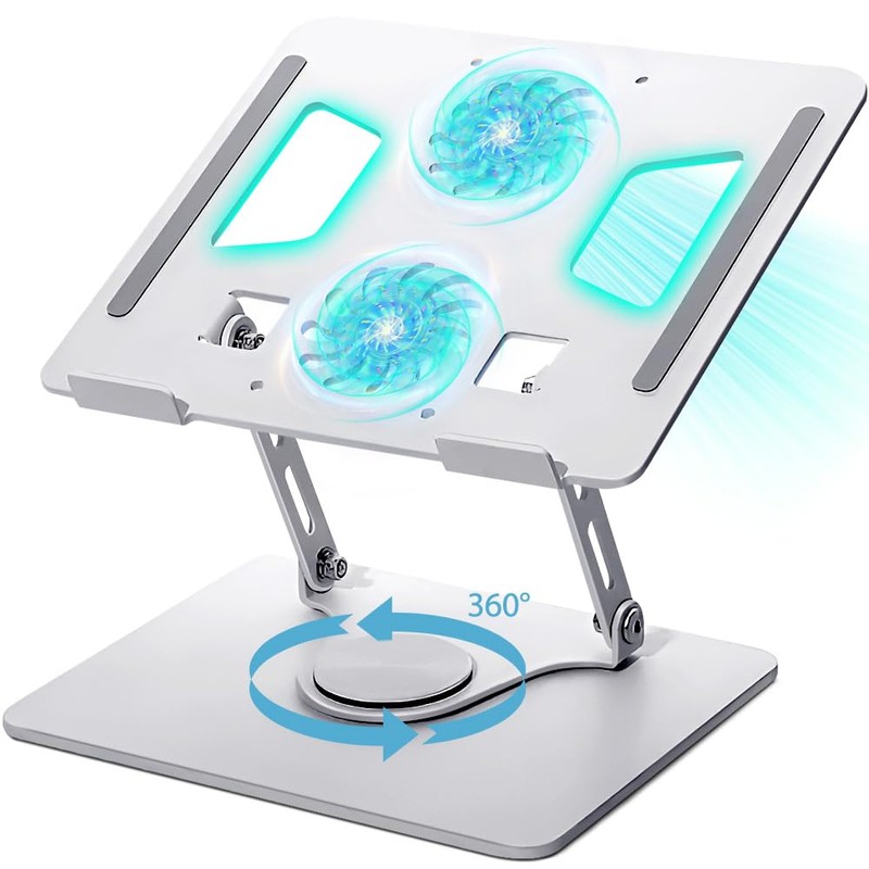Laptop stand features a 360-degree swivel design that rotates in any direction. The 360-degree swivel design of this laptop stand for desktop makes it easy to share your screen with a partner across the room or at another table, supporting group discussions, brainstorming, and other scenarios that require screen sharing.