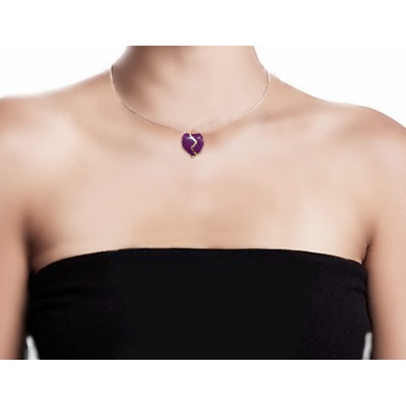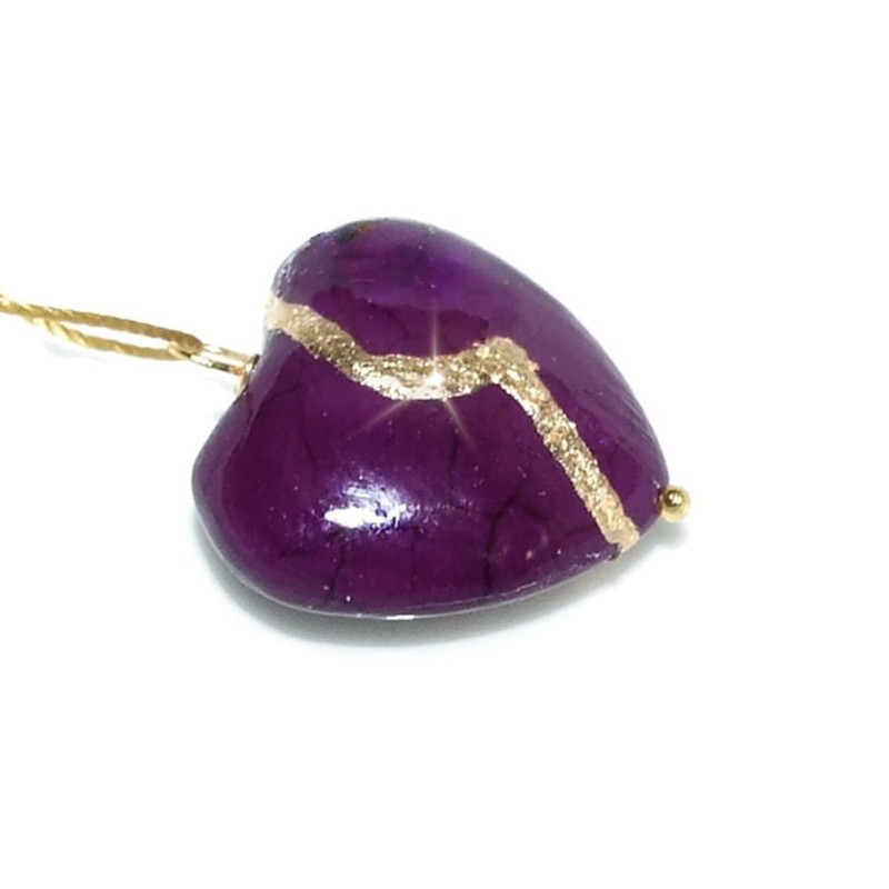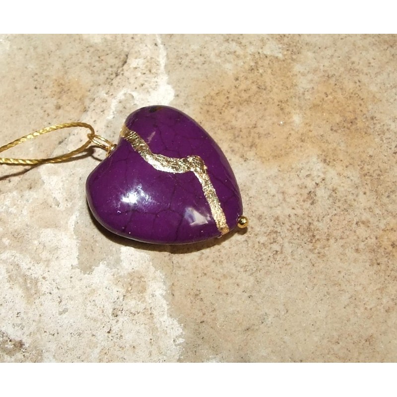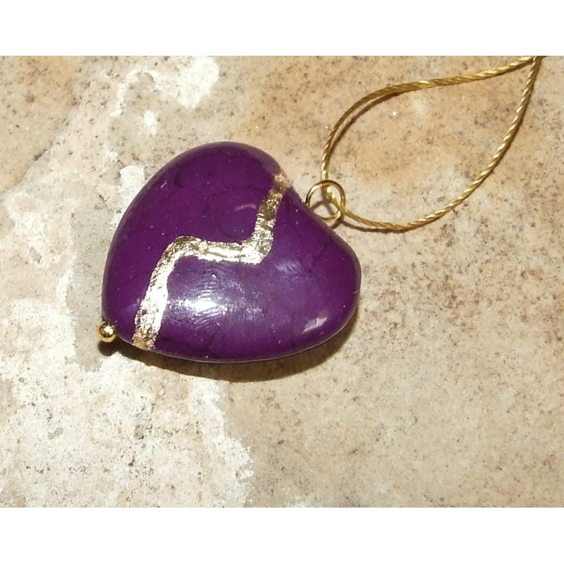 A beautiful large 1" (25mm) smooth kintsukuroi "mended heart" purple howlite pendant has been simply hung on a silky soft yet unbreakable silk-like cord. This stone feels smooth and cool against the skin.