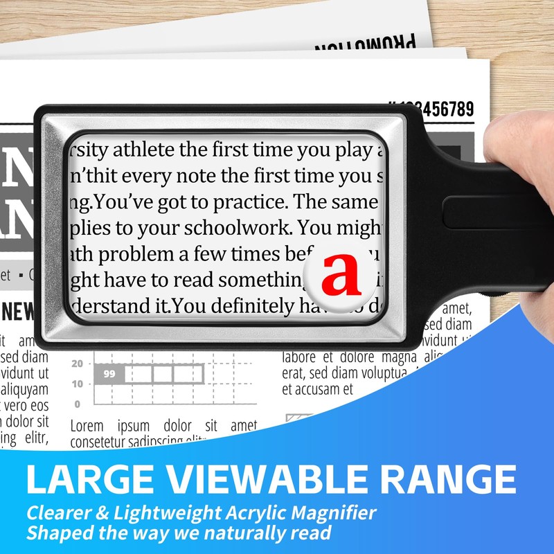 - PREMIUM RECTANGULAR MAGNIFIER: Unlike traditional round lenses prone to edge distortion, our magnifier features high-quality rectangular acrylic lenses that deliver crystal-clear, distortion-free viewing. Ideal for reading fine print, magazines, photos, and appreciating jewelry or intricate crafts.
