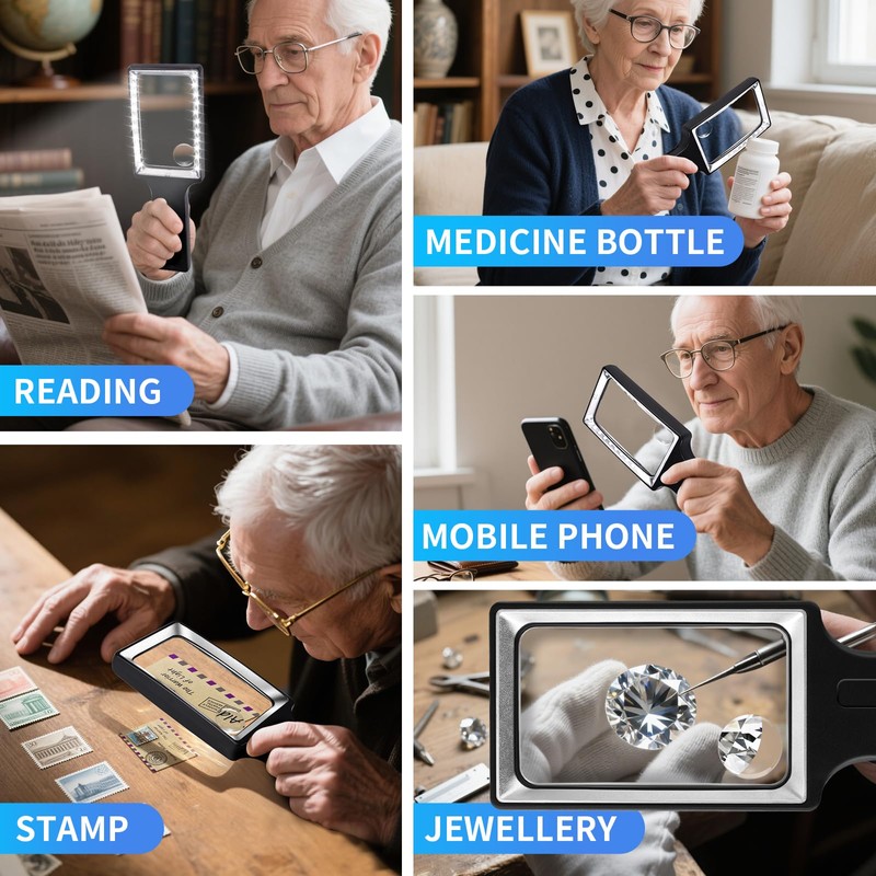 - VERSATILE MULTI-SCENARIO APPLICATION: Adapts to diverse needs: books, newspapers, photos, maps, stamps, circuit boards, jewelry inspection, and more. An indispensable tool for readers and craftsmen, and a thoughtful companion for seniors and the visually impaired.