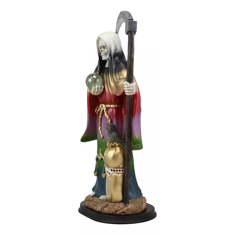 Large 16.75"H Rainbow Holy Death Santa Muerte Holding Scythe Globe W/ Owl Statue