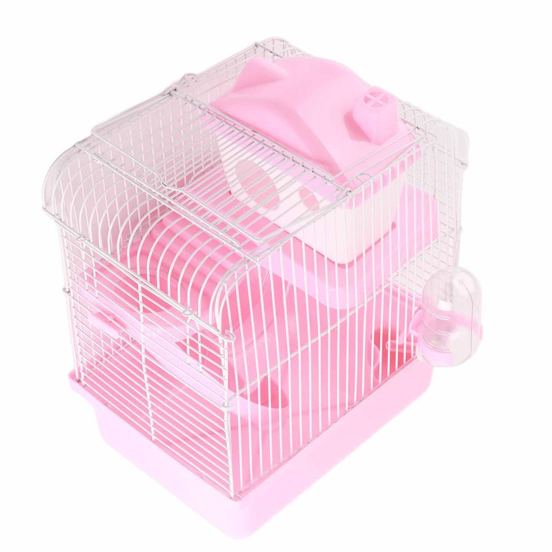 Large 2 Layer Hamster Cage with Removable Design, Easy Install Small Pet Cage Home for Hamster, Guinea Pigs, Rabbits (Pink)