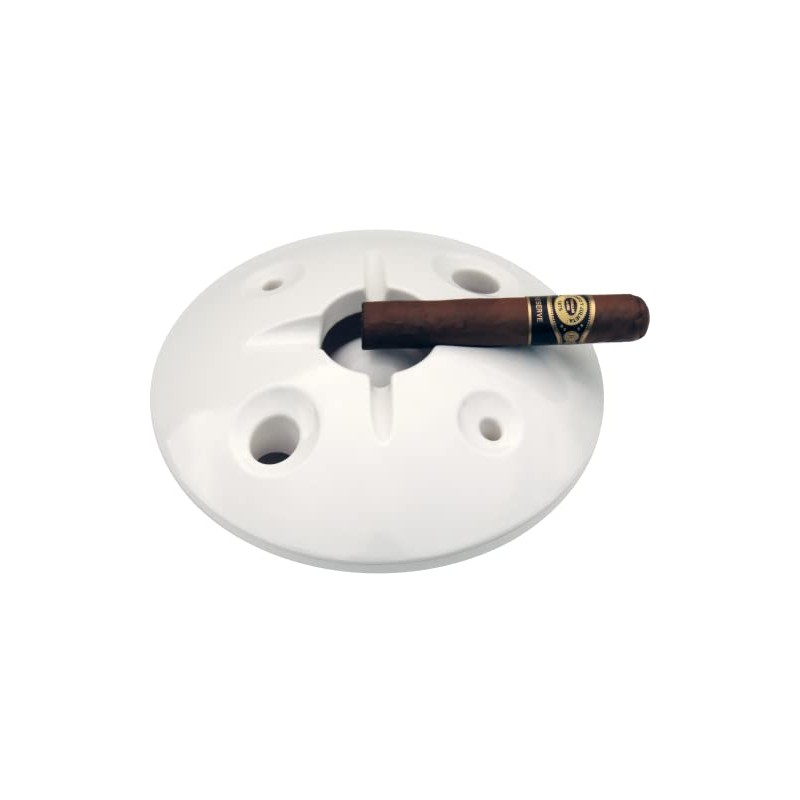 The only windproof ashtray for cigars & cigarettes in this size. This unique 2 part large commercial grade windproof ashtray hides ash & cigar & cigarette butts inside & keeps tables clean & ash free, especially in a breezy outdoor setting. Specially designed holes makes snuffing of cigars & cigarettes easy. This is the perfect smoking accessory for indoor or outdoor use. The easy- clean melamine makes it heat resistant and dishwasher safe. Used on cruise lines, luxury hotels and other commercial applications. The unique removable lid keeps ashes from being blown by wind and reduces odor while keeping ash and butts out of sight, even while smoking. You can enjoy a continuously clean-looking ashtray. Holds cigar & cigarettes at the same time. Color of this ashtray is White, for Black search B00PGXR5CW, for Royal Blue B00PIDWV9M, for Chocolate B01LWNLHQL.