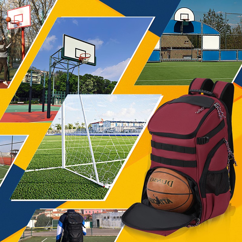 - LARGE & MULTIPLE SEPARATE PARTITIONS : TRAILKICKER large basketball bag backpack for men women boys girls has 35L capacity and 6 compartments, such as 1x ball compartment, 1x main compartment, 1x front zipper pocket, 2x mesh bottle pockets and 1x detachable shoe pocket. The separate design of different compartments can help you store your items in partitions to make them more organized and clean