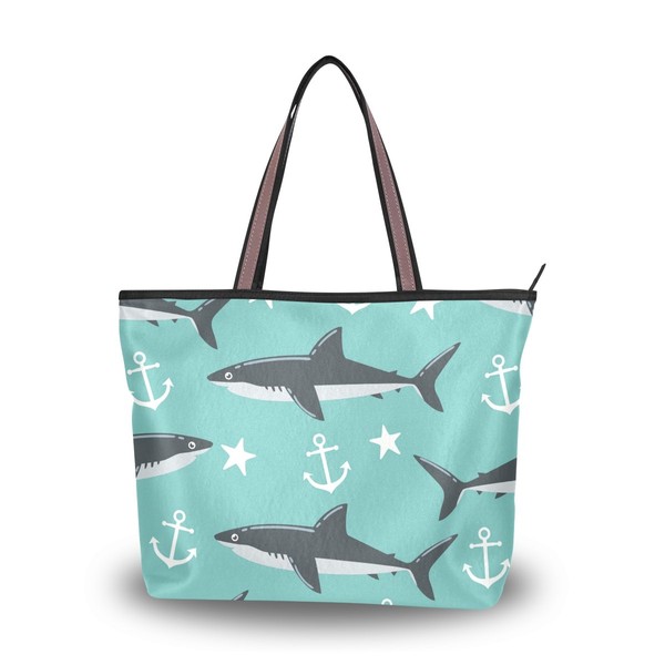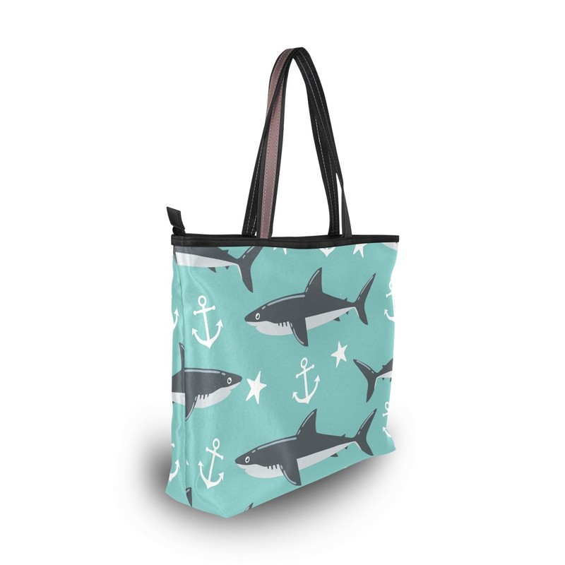 Large Beach Travel Tote Bag Shark Printed Handle Shoulder Handbags