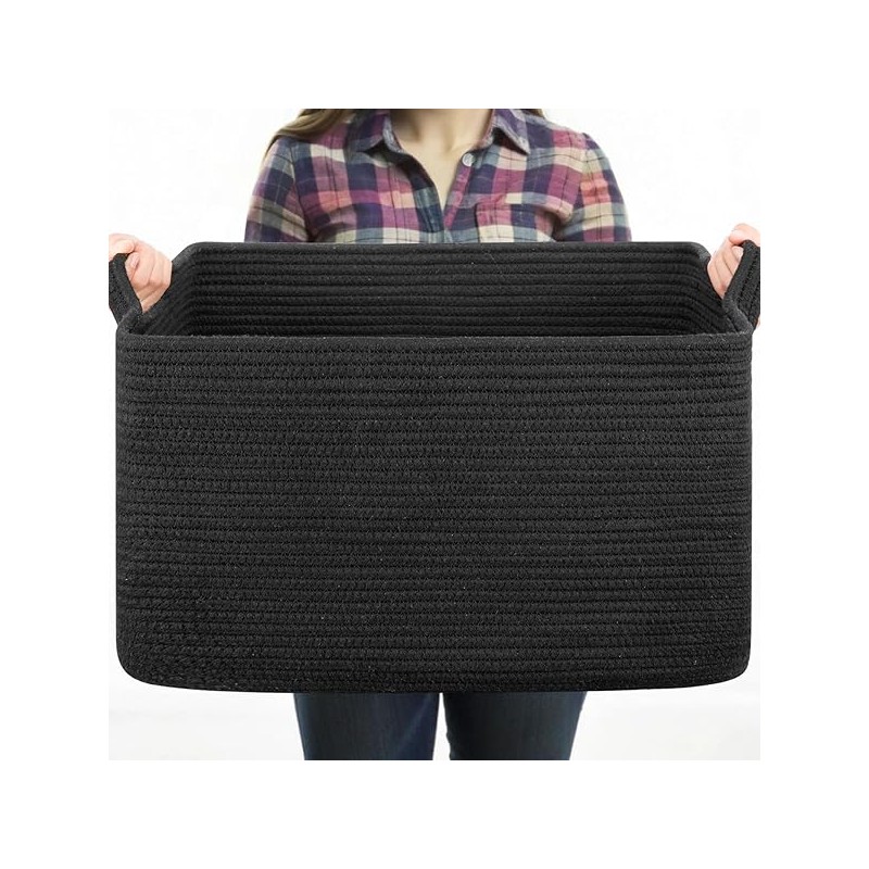 Large Blanket Basket, Black Blanket Storage Living Room, Rectangle Woven Baskets for Storage Toys, Towels, Diry Clothes Organizer Bins (Black)