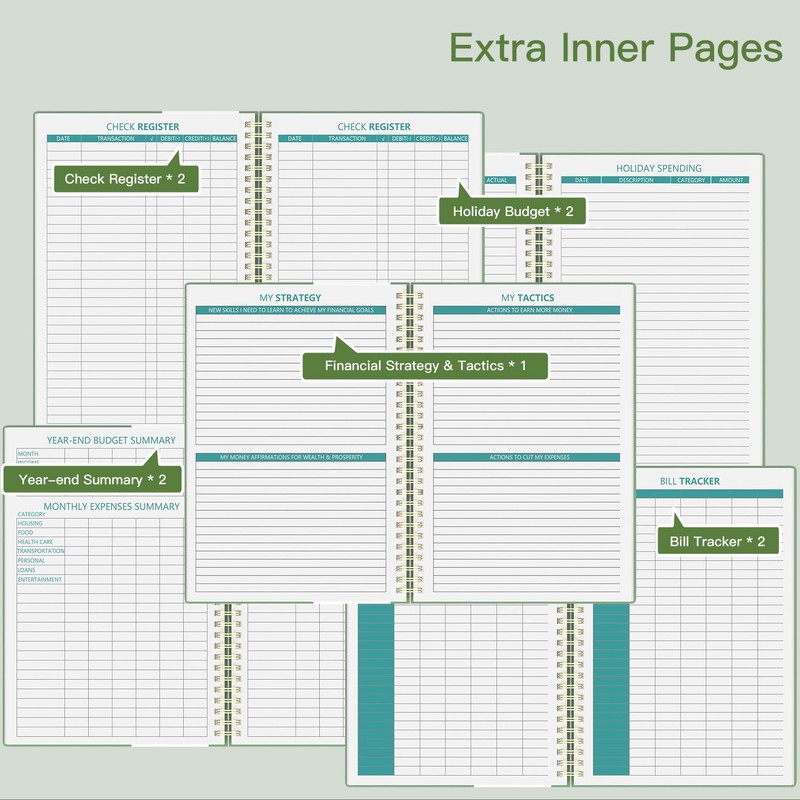 - ✔️UNDATED & 1 YEAR USE - Undated finance books start with 1 page for financial goals, 1 page for financial strategy & tactics, 6 pages for saving tracker, 6 pages for debt tracker, followed by 12 months(10 pages per month, 1 unique color for each month). 2 pages for check register,2 pages for holidays budgeting, 4 pages for yearly & monthly summary and 2 pages for bill tracker(colleague ruled). It is undated, so you could start at any time, suitable for 1 year use