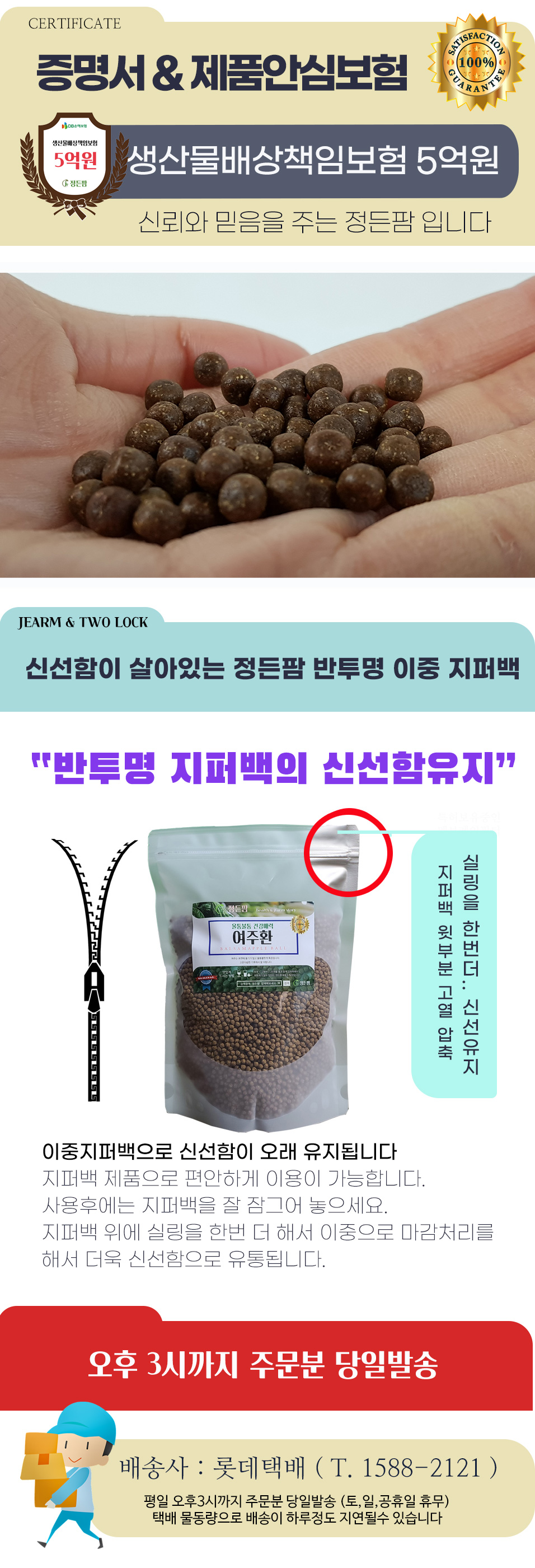 Large capacity Yeojuhwan 1kg double zipper pack / 대용량 여주환 1kg 이중지퍼팩