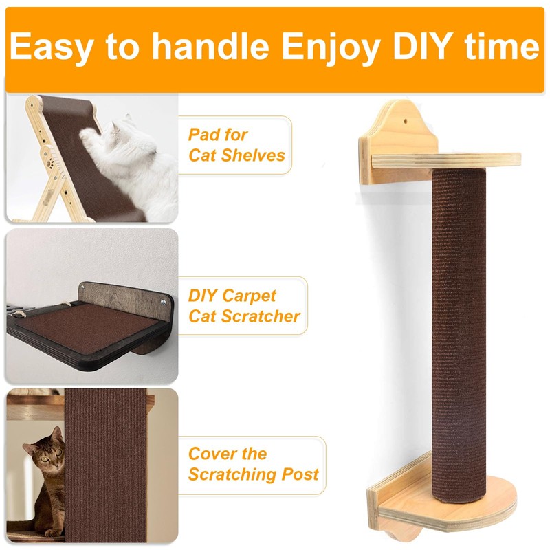 - PREMIUM MATERIAL - The cat scratching pad carpet is made of excellent polyester material. The texture of the wall cat scratcher is nice and dense, thickness is perfect for Sofa and cat furniture. Roll packaging for shipping, fully protecting the cat scratch pad from creases.