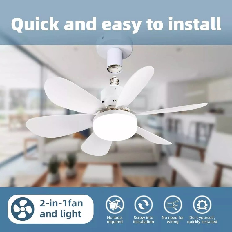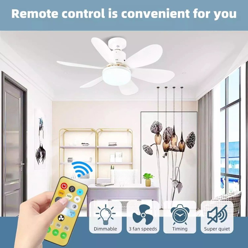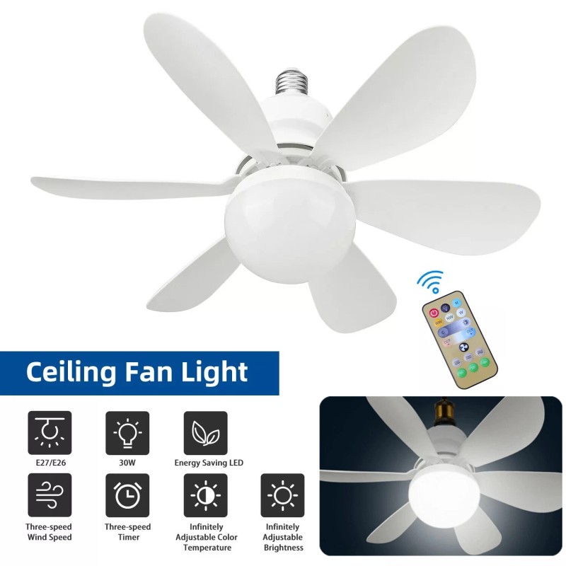 Large Ceiling Fan E27 Socket Fan 30W with Dimmable LED Light Remote Controller