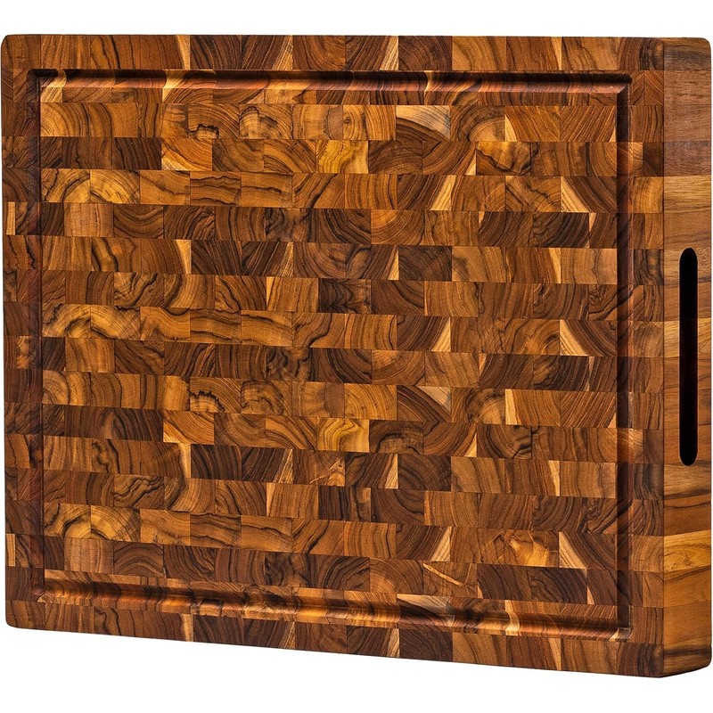 Extra Large End Grain Butcher Block Cutting Board [1.5" Thick]. Made of Teak Wood and Conditioned with Beeswax, Flaxseed Oil & Lemon Oil. 20" x 14" Chopping Board by Ziruma.