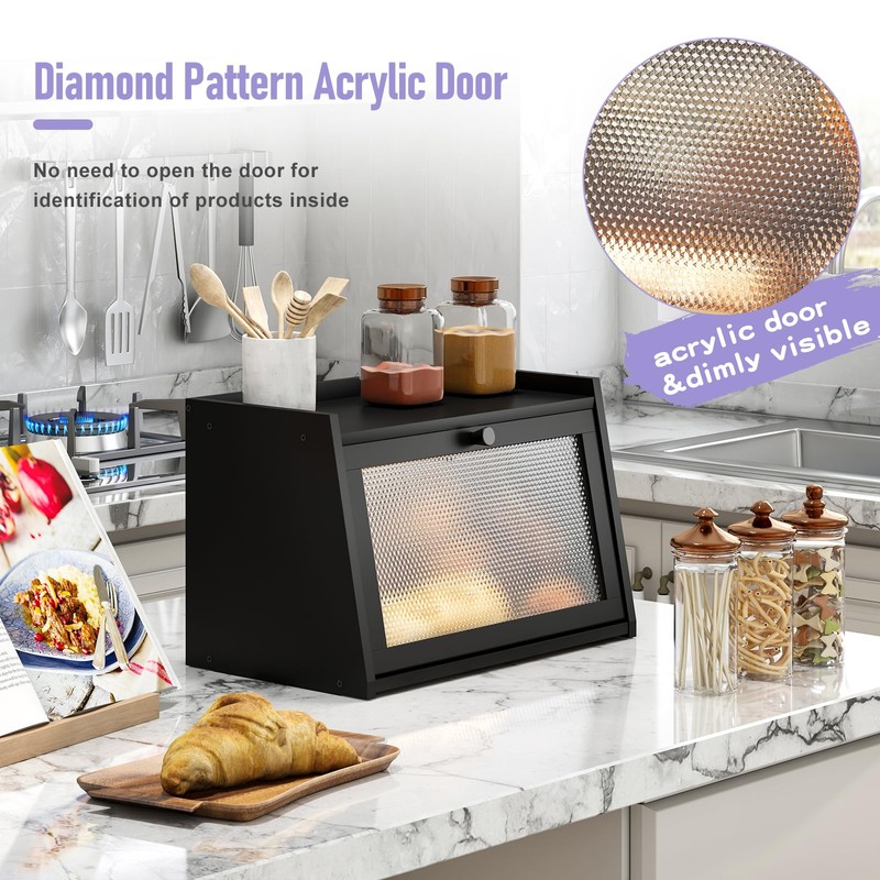 • ACRYLIC WAVY DOOR PANEL: The unique wavy design of the door panel adds a touch of elegance to your kitchen decor while allowing easy access to your bread and baked goods