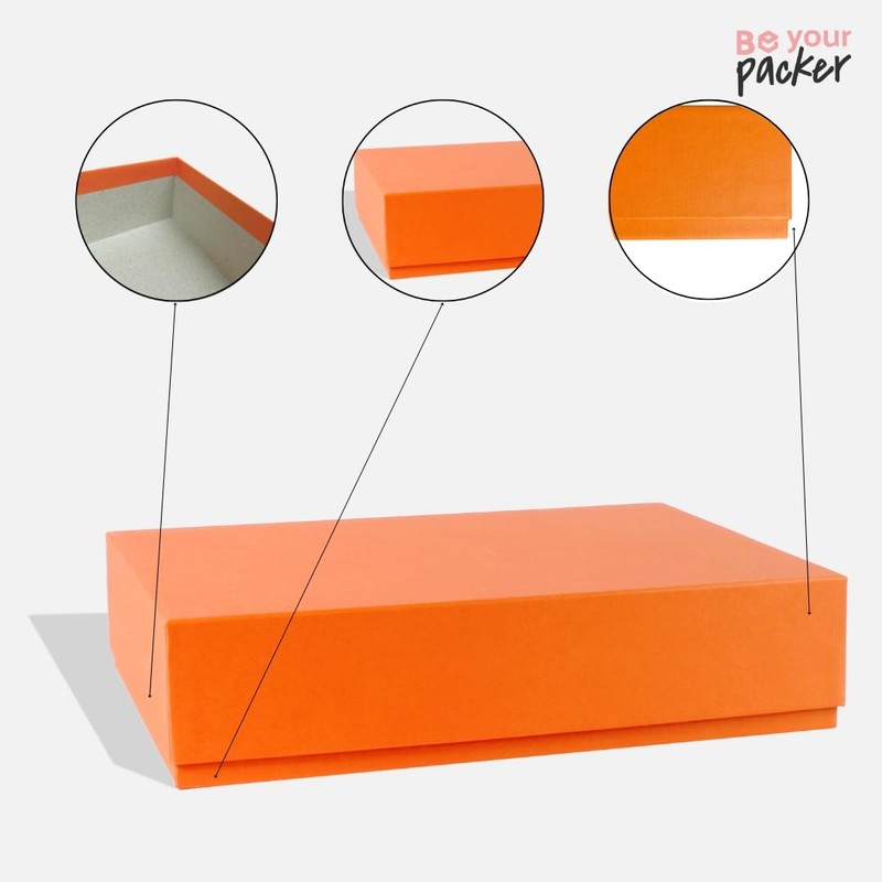 - QUALITY ⇢ Our gift box is durable and resistant to use on any occasion. They are made of 1.25 white solid cardboard + premium quality orange coated paper