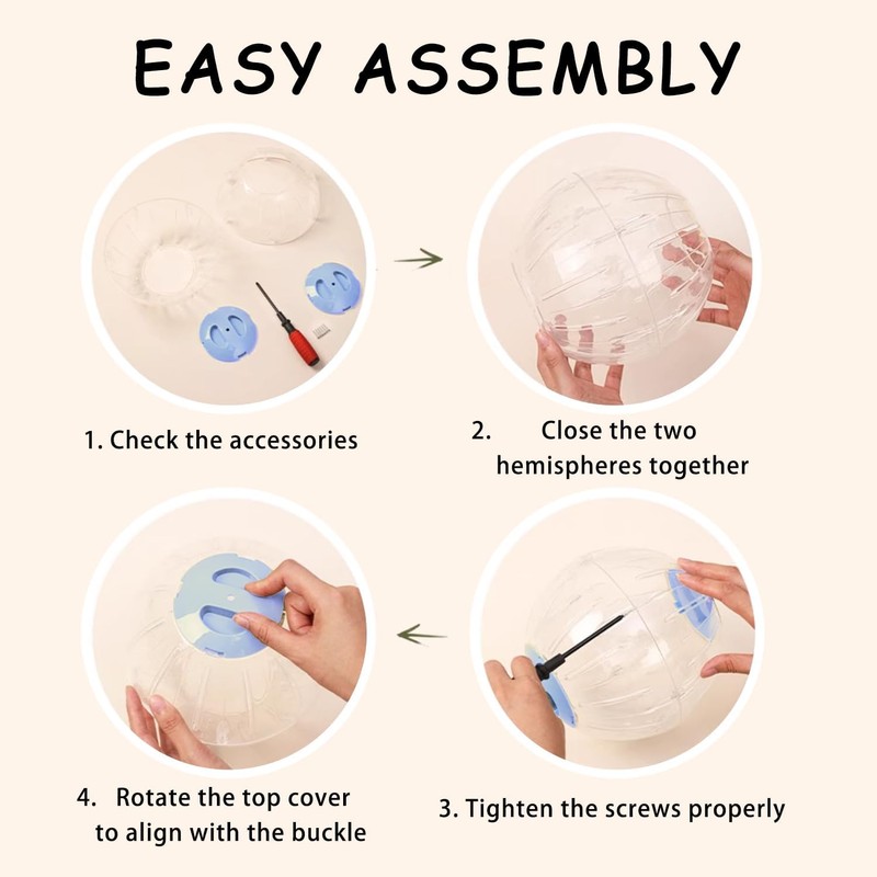 - FULL PACKAGE DESIGN:The fully enclosed design of the running ball toy conforms to the hamster's avoidance habits, firmly locking the pet inside the toy to isolate external dangers and avoid injury during exercise.