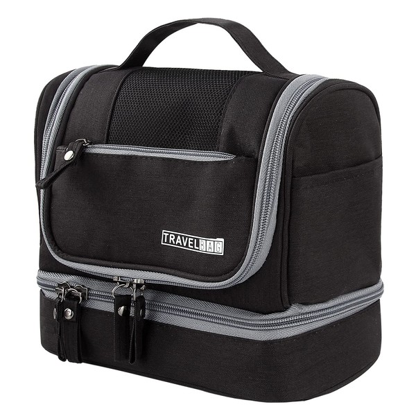 Large Hanging Travel Toiletry Bag,M MUNCASO Travel Cosmetic Organizer Wash Bag for Men Women with Dry and Wet Separation 2 Layers Design Waterproof Bathroom Bag (L-Black)