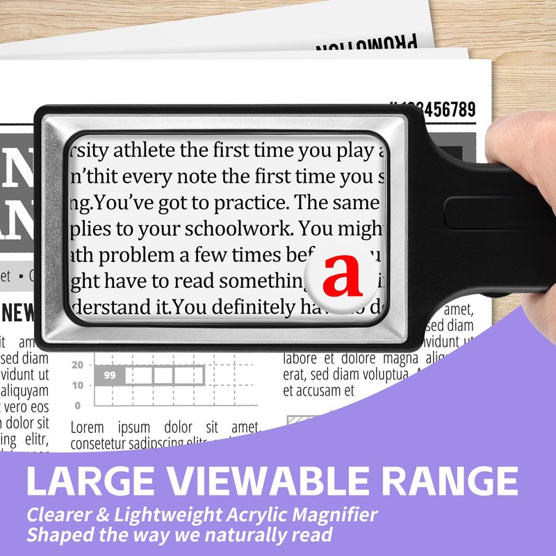 - PREMIUE RECTANGULAR MAGNIFIER: Unlike traditional round lenses that are prone to edge distortion, our handheld magnifier uses high quality rectangular acrylic lenses to ensure a clear and accurate view without distortion, perfect for reading small print, magazines, photos, and appreciating jewellery and various fine crafts.
