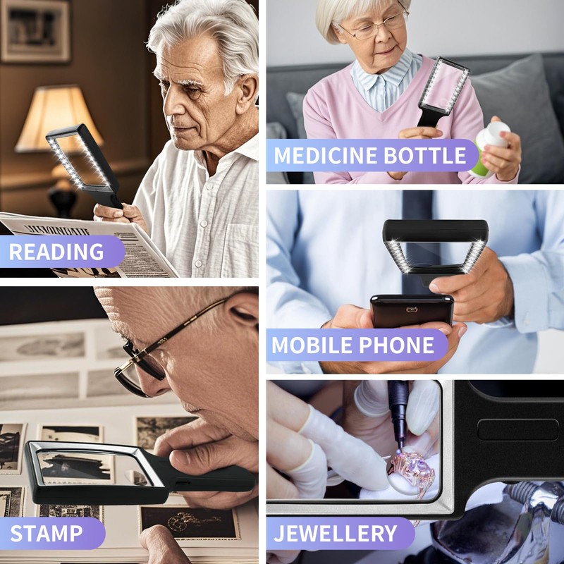 - WIDELY APPLICABLE SCENARIOS:This magnifier can meet diversified needs: suitable for reading books, newspapers and magazines, examining photos, maps, coins, electronic components and jewellery. It is a good assistant for reading enthusiasts and craftsmen, as well as a sweet companion for the elderly and the visually impaired.