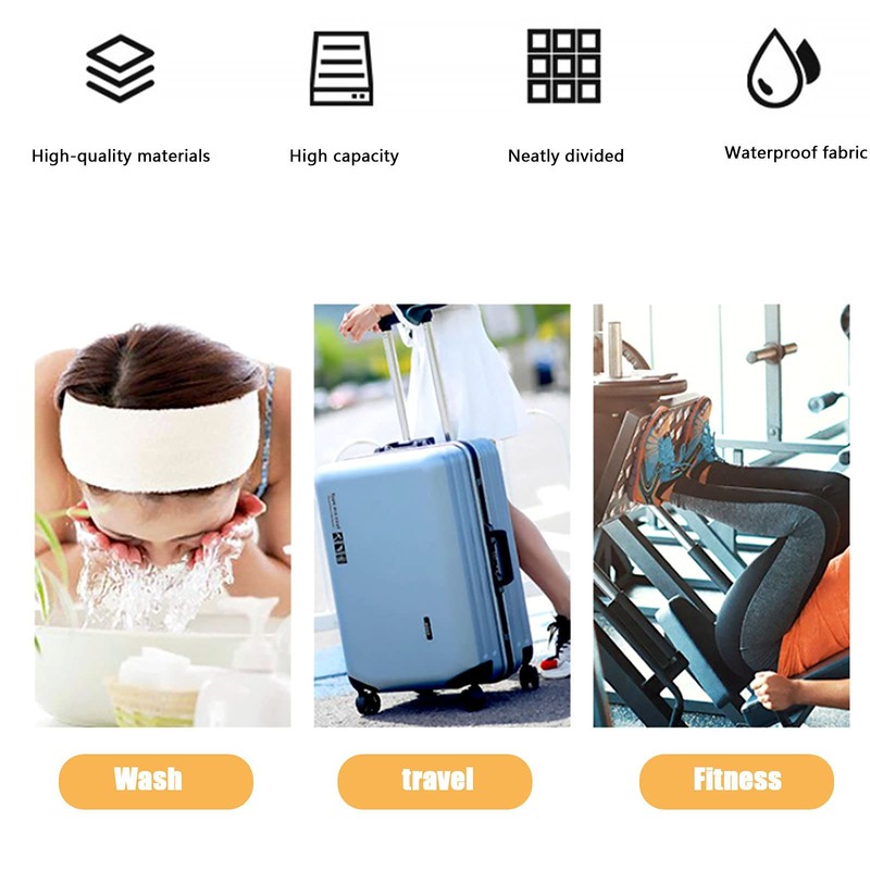 Large Make Up Organiser Bag, Portable Travel Cosmetic Bag Pouch, Toiletry Wash Bag with Handle, Waterproof Makeup Storage Case, Black Vanity Bag for Women Ladies and Girls